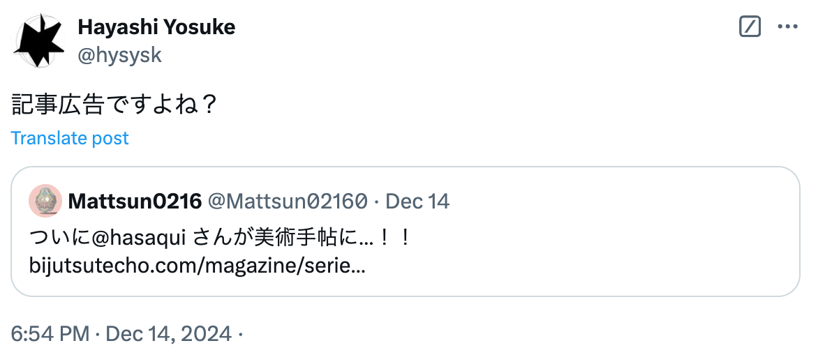 いやあ、その、Zach、ぼくは君の投稿に「それやったことあるよ」的な返信を2回くらいやってしまったことがあって、もうずいぶん前にそういう振る舞いはやめたつもりなんだ。君がぼくをブロックした2017年の前に、ぼくらがやり取りしていたDMの内容を許可なく引用するつもりはないけど、今日のリプ合戦を踏まえて、あのやり取りをもう一度読み返してみるのも悪くないかもしれない。あの文脈で読むと、けっこう興味深いと思うよ。