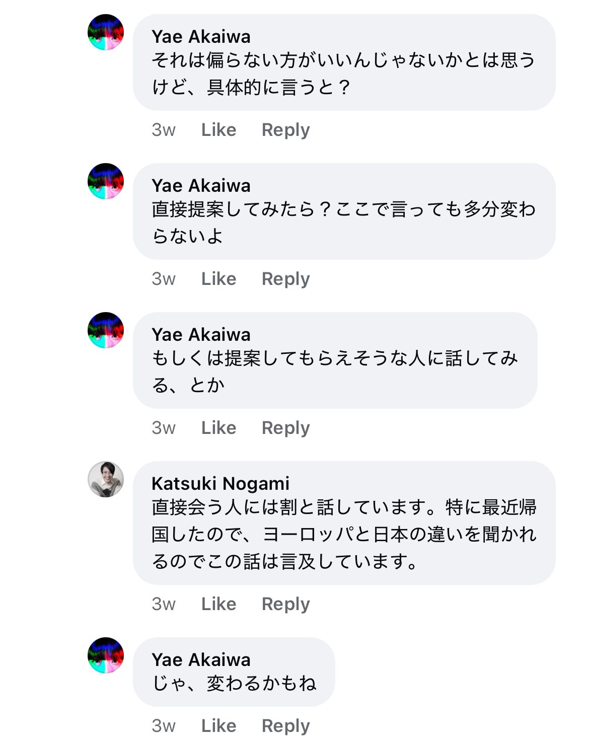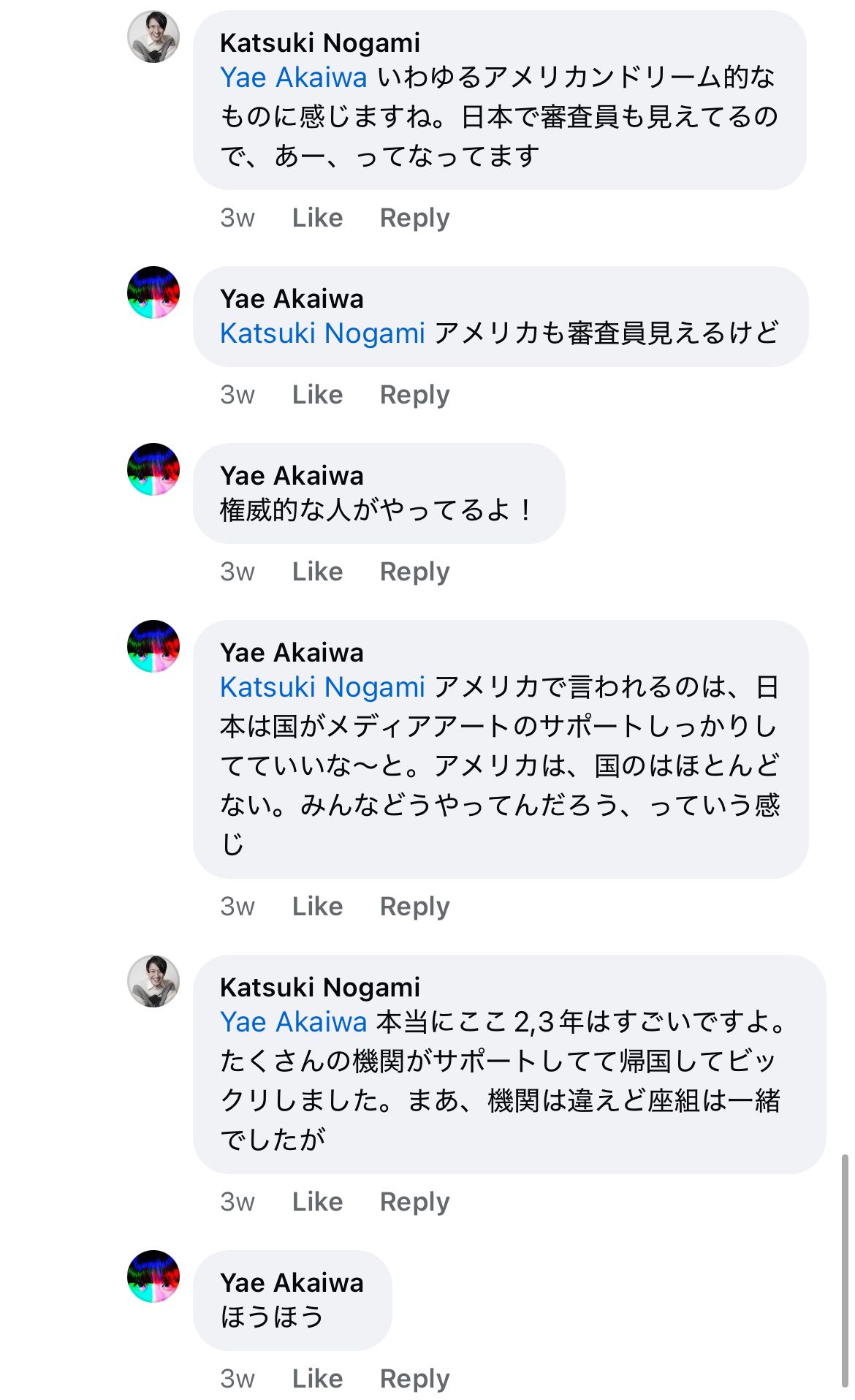 にたいする赤岩やえさんの返答