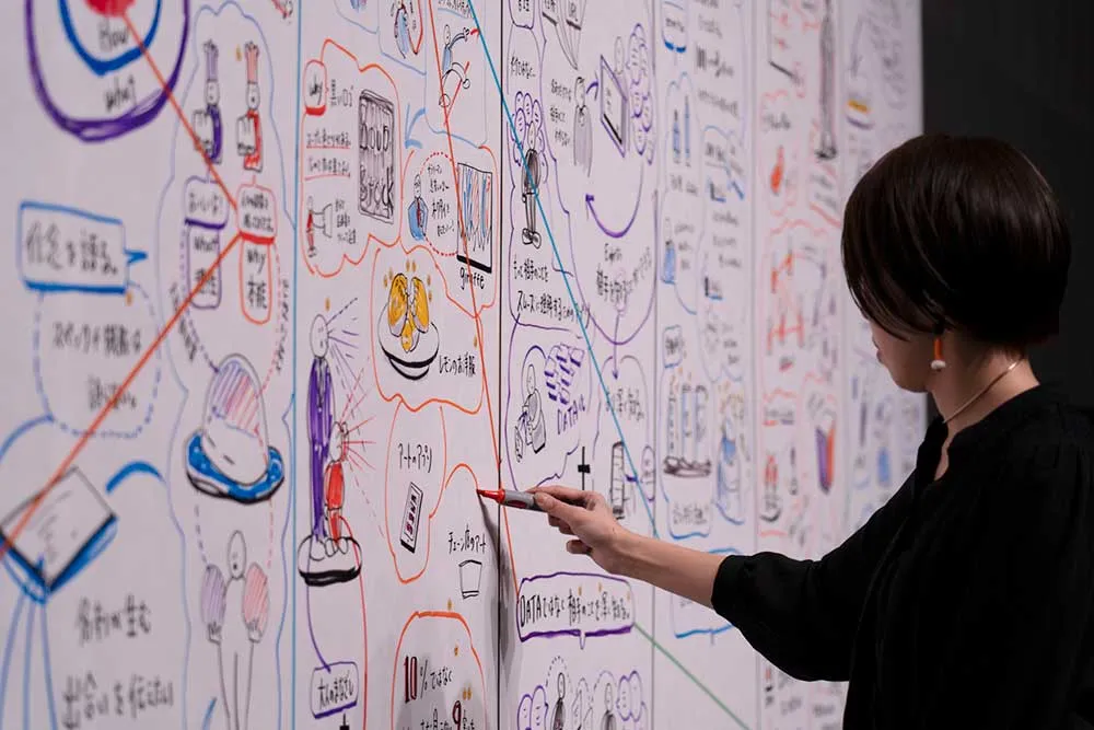 人々のクリエイティビティを高めるための視覚言語のデザイン、多様な価値観を持つ人々が集まる話し合いの可視化を専門とし、著書に「議論を可視化するグラフィックレコーディングの教科書」(BNN新社)がある。2013年から2017年にUXデザイナーとしてYahoo! JAPAN在籍。2019年、東京藝術大学デザイン科にて修士課程修了。現在は、ビジュアライズ手法の開発、作品制作、執筆などの活動を通じて、ビジュアルで思考することの可能性を探求中。