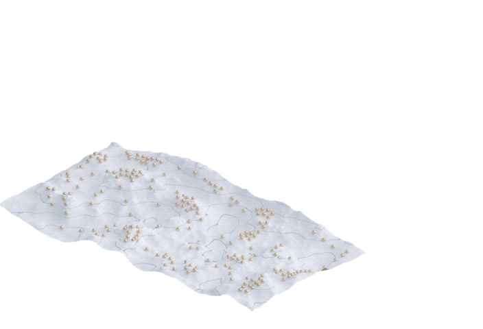 正のフィードバックだけでなく、負のフィードバックも考えられます。つぶつぶが密集している場所がウォーターベッドのように押し下げられ、そこにできた穴からつぶつぶが脱出しようとするのです。粒子同士の反発力のように働き、つぶつぶ開封は均一に配置されるまで移動し続します。