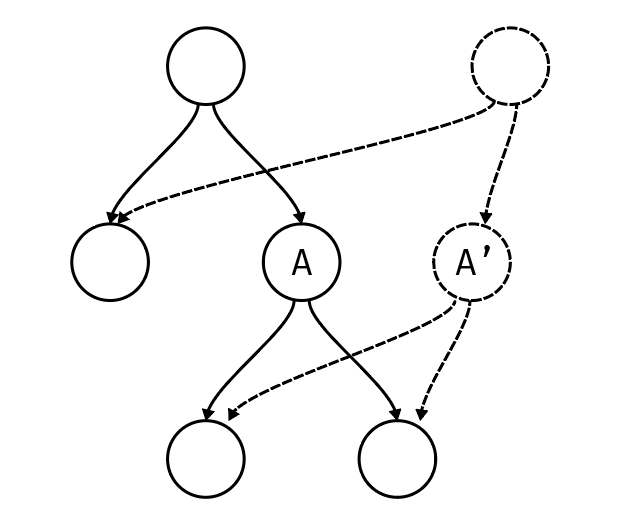 こうした双方向の参照をもったグラフ構造は、ActionScript や Paper.js、Three.js などのステージオブジェクトにも見て取れます。つまり、それぞれのステージオブジェクトが children() や parent() メゾットを持っているということです。このような場合、どのようにしてイミュータブルなノードの更新をやってのけるか に個人的に悩んでいます。親から子への参照しか持たない木構造の場合は、このようなことになります。