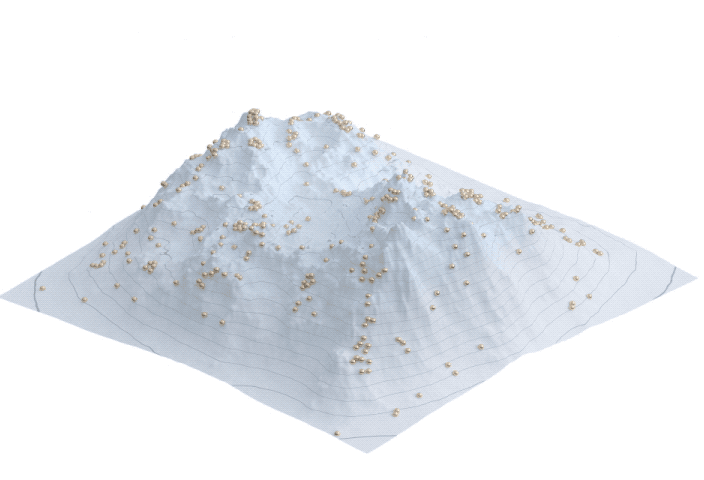 I've often used the notion of fitness landscape as a metaphor when thinking of genes and memes in a complex world. It can be useful to understand natural selection visually, but it'd be also a nice model to abstract how evolution or innovation works in society, design, and even software development as a sort of mountain climbing. Here are some gifs that show how particles behave in various environments. All of the imageries are under CC-0 so please feel free to use them anywhere.