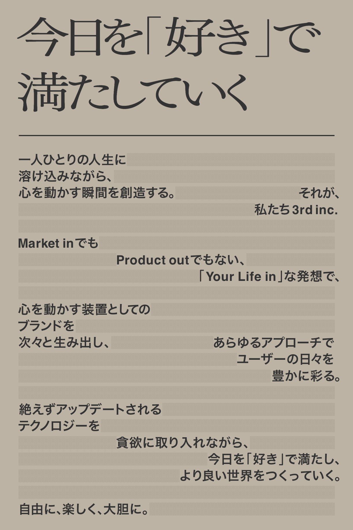 baku89.icon 結構今のWebGLで最先端なことをされているようなプロダクションが、スキルをフル活用してつくるようなページって、どちらかというとデザインコンサルとか、あとクリエイティブエージェンシーとか、ちょっとランディングページをカッコつけたい系の企業じゃないですか。その、あのこう、“世の中に、アソビ心を、謳う。” みたいな、あのスピリチュアルな社是とかクレドを動かすのって、逆にそれだけWebGLを使ったかっこいい表現を突き詰められている人たちのポリシー的に、嫌じゃないのかなって。