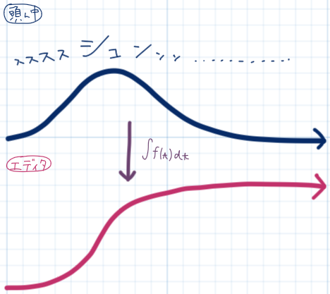 例えば「ここでシュン!っとなる」の「シュン!」は速度のピークを表しています。それを実際に紙やアニメーションカーブ上に再現するときには、一旦頭の中で積分して位置に置き換えてやらなくてはいけません。
