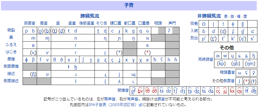 子音の一覧