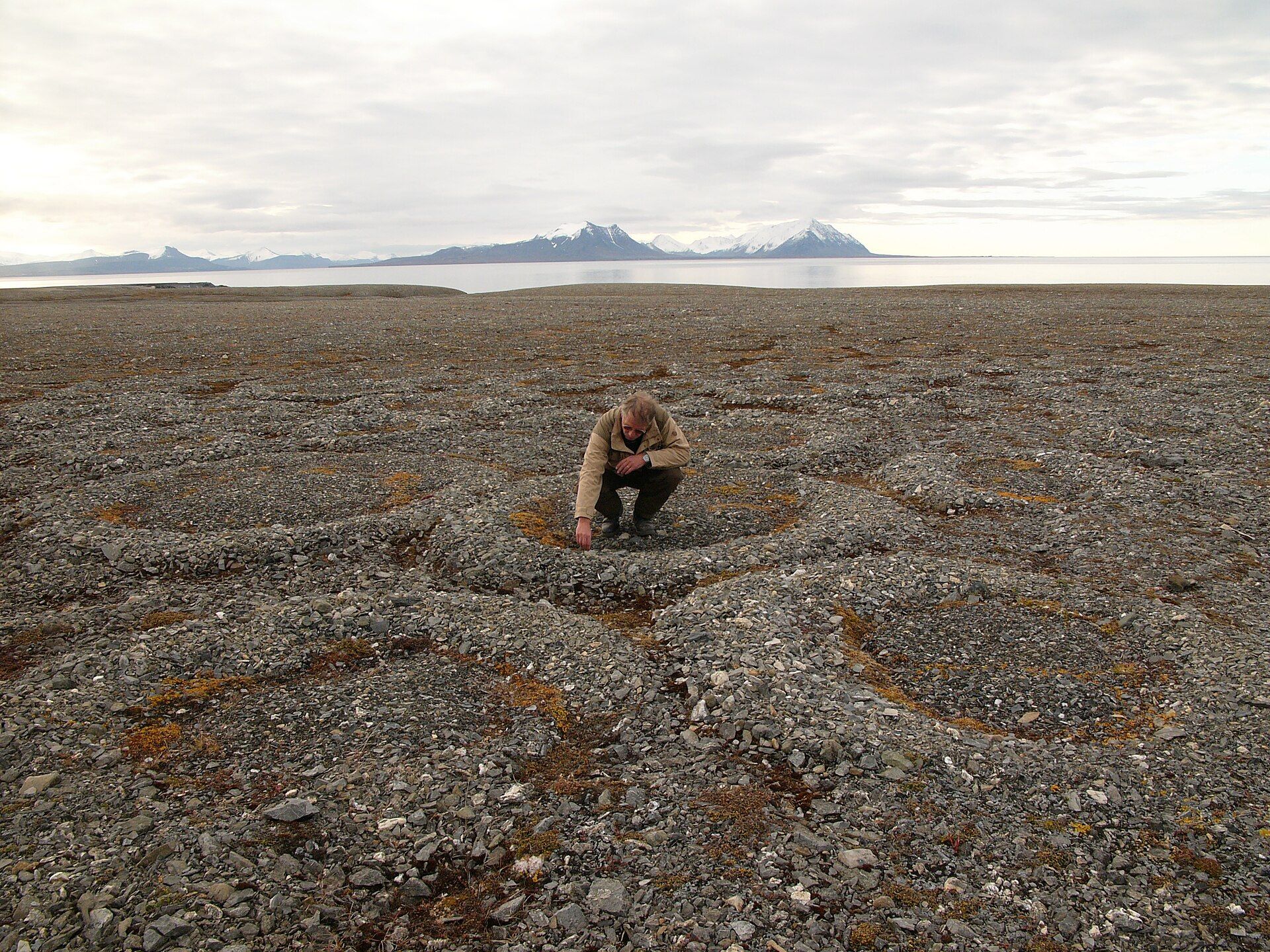凍結融解作用によって形成される幾何学的な形をした地表面の模様や微地形である1(https://ja.wikipedia.org/wiki/%E6%A7%8B%E9%80%A0%E5%9C%9F#cite_note-GSI-1)。