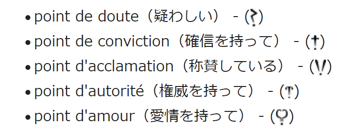 疑問の「?」や驚きの「!」以外にも、文章のニュアンスやテンションを表現する記号はあっても良いんじゃないか、という提案。意外に歴史は古く、16 世紀から色々な種類の記号が提唱されている。