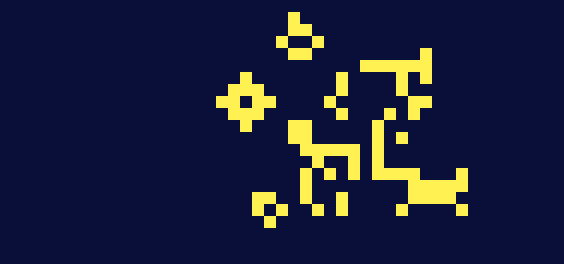 生成ルール同様, UI の生成に使用しています。ライフゲームとは少し違った、チェーンソーのような形状が面白かったので、部分的に使用しています。