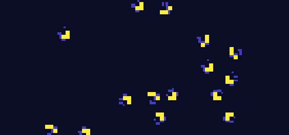 ラストのニューロンらしきものに使いました。無数のつぶつぶがランダムに動き回っていて、『枝』の先にひっついたら固定されます。各世代をそのまま書き出すと成長に相当時間がかかるので、樹状構造がある程度成長した段階のものに、先述した塗りつぶしルールなどを適用しアニメーションさせています。