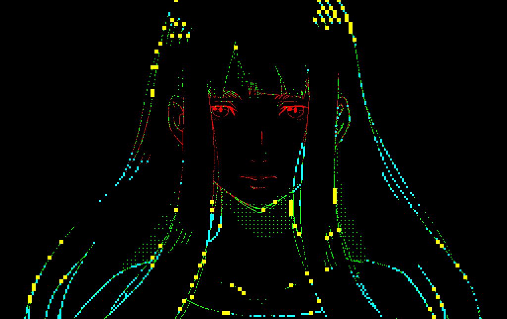 ラストの細かいウィンドウ群で構成された四季らしき構造物は、Life-like CA や UI 化を複合的に組み合わせてつくりました。まず線画素材を 4 種類の解像度の計 24 つのレイヤーにバラします。上図は解像度毎に色分けしたものです。目のあたりの解像感を高くしているのが分かるかと思います。 寿命と最大誕生回数を短めに設定したB23/23をベースに、毎フレームごとに線画を生きたセルとして上書きしながらシミュレーション。その後、モーフィング・UI 化を施してます。