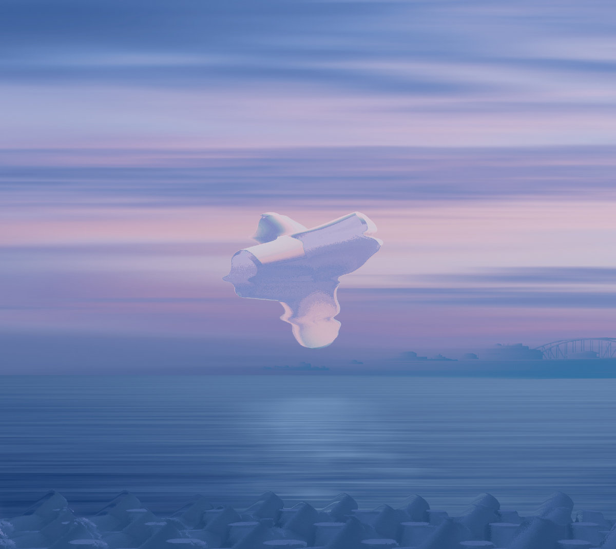Artwork for the TV anime Sagrada Reset soundtrack by Rayons, released by flau records. The design incorporates the tetrapod structures featured in the anime, expressing a quiet world that is both silence and radiance, resonating with Rayons’ music and flau’s dreamy aesthetic.