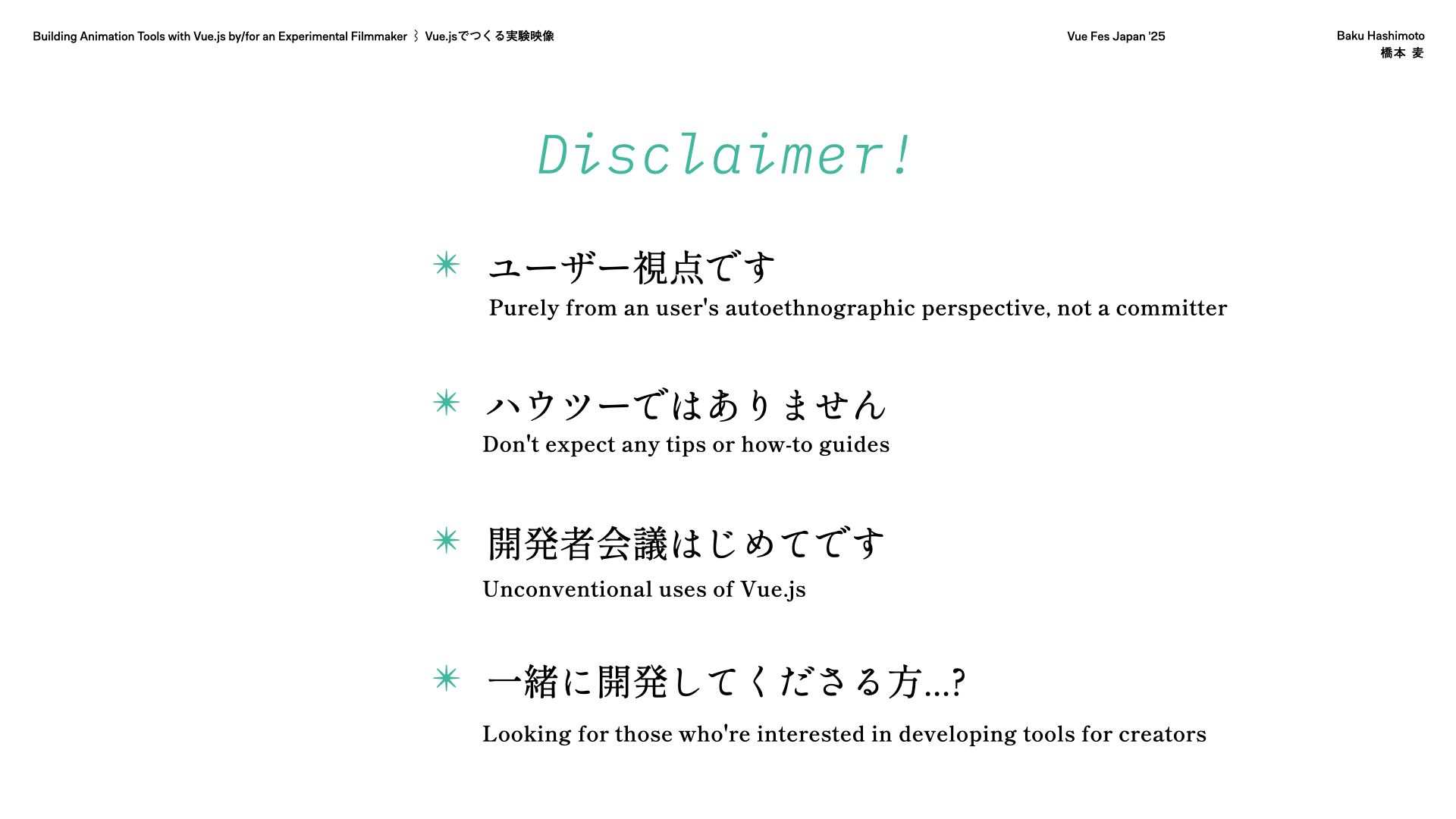 Vue Fes Japan 2025『Vue.jsでつくる実験映像』