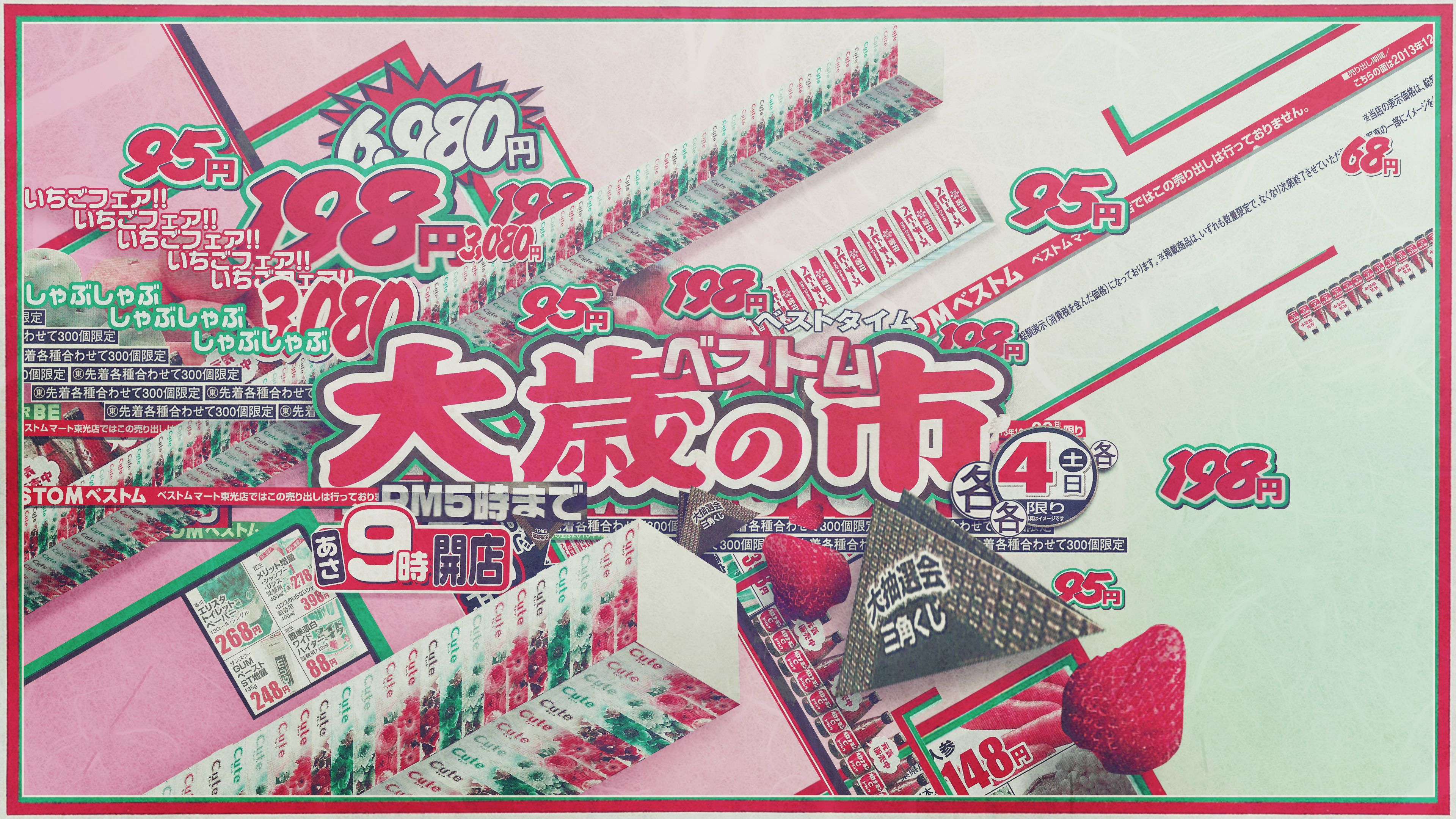 ヴァナキュラーなグラフィックデザインとしての、折込チラシが昔から気になっている。分版の仕方、情報の詰め込み方。