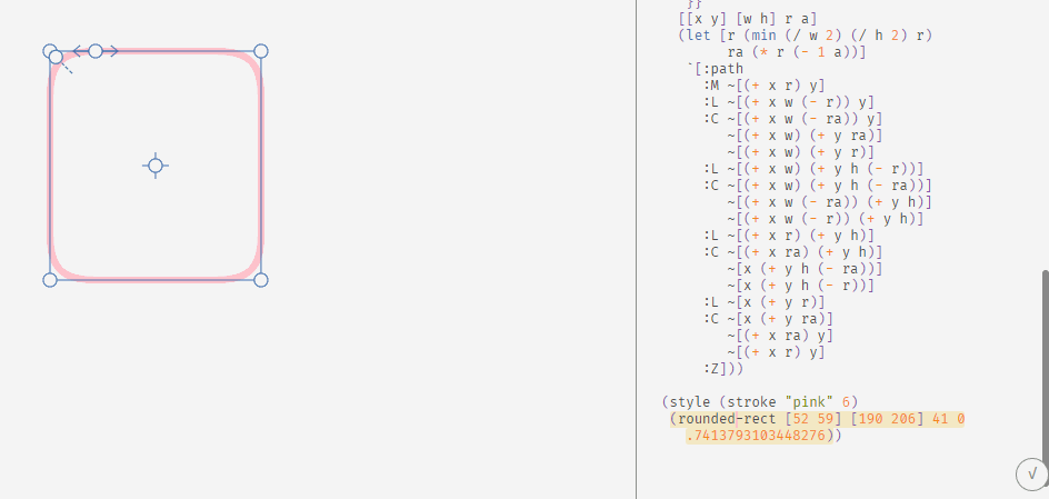 - 通常「角丸半径」に負の値を設定することはできないが、何らかの方法でリミッターを解除できるようにする。⌘マークが描けるね