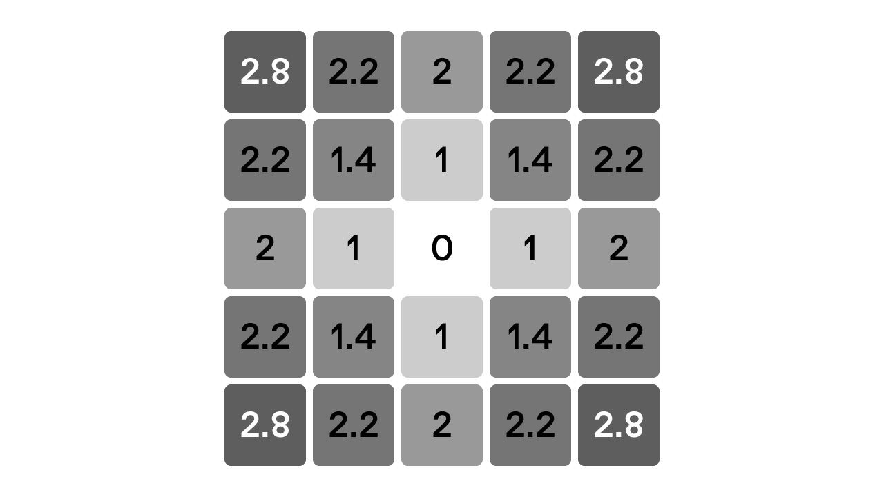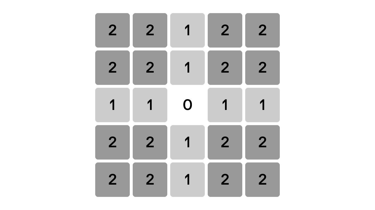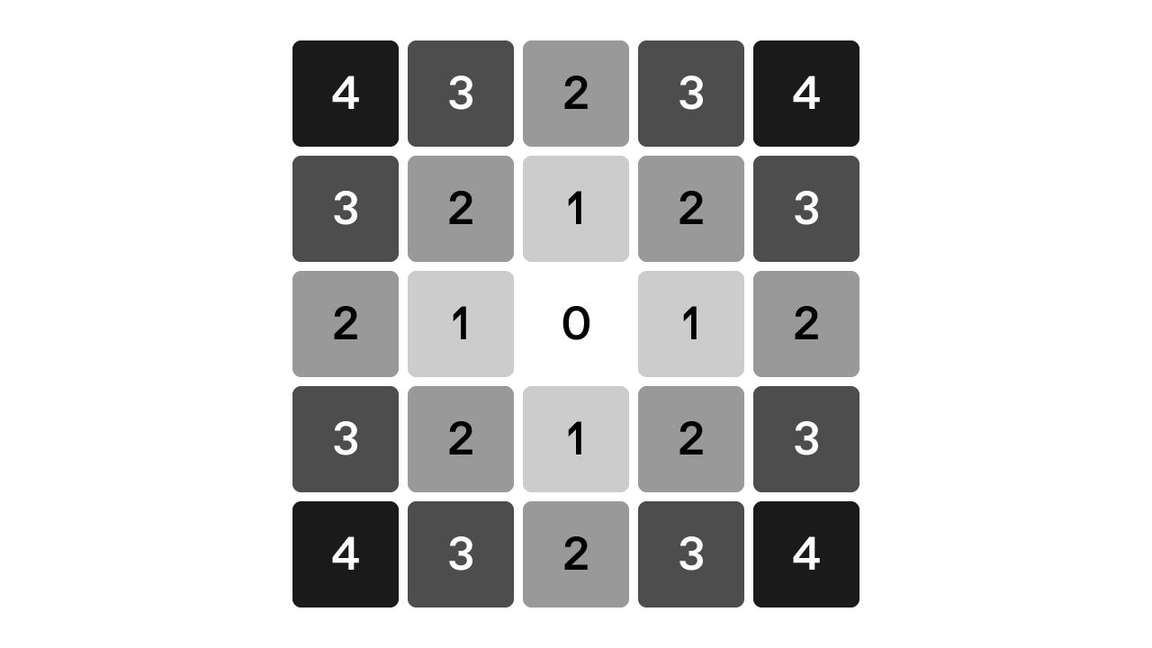 中心を現在位置、マス内の数字を操作距離とすると、こんな感じに図式化できます。