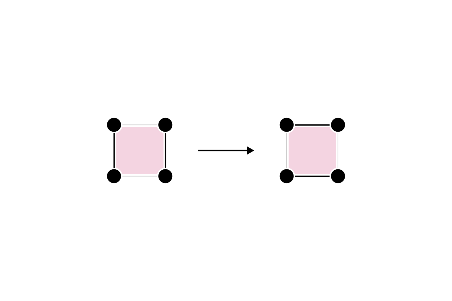 このとき、下図の左のような「一組の対辺が繋がっているがもう一組は繋がっていない」格子を見つけたら、右のように繋ぎ変えるという操作をランダムに行います。