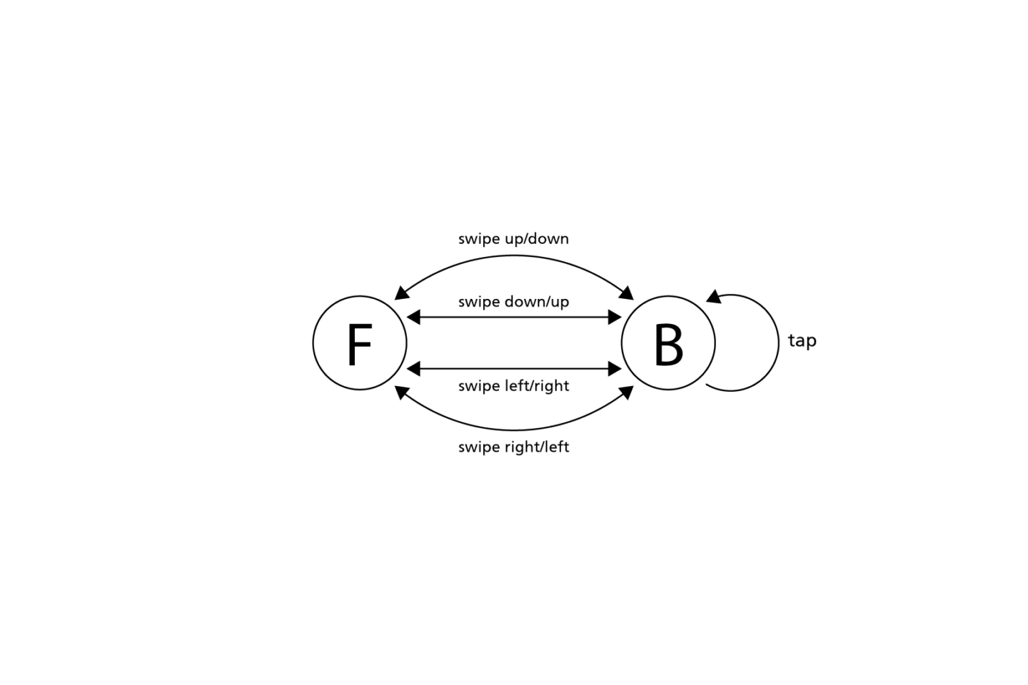 例えば、上からやって来て右へとはけていくのは U-R' と表せます。このように、あるマスは「もちがいずれかの方向からやって来るところ」という 4 状態から、「いずれかの方向へと去っていくところ」という 4 状態への変化を繰り返しています。こんな仕組みを賢く書き表せるのがステートマシン図(状態遷移図)です。