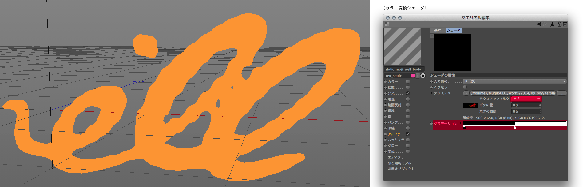 • 左: C4D から書きだした素材